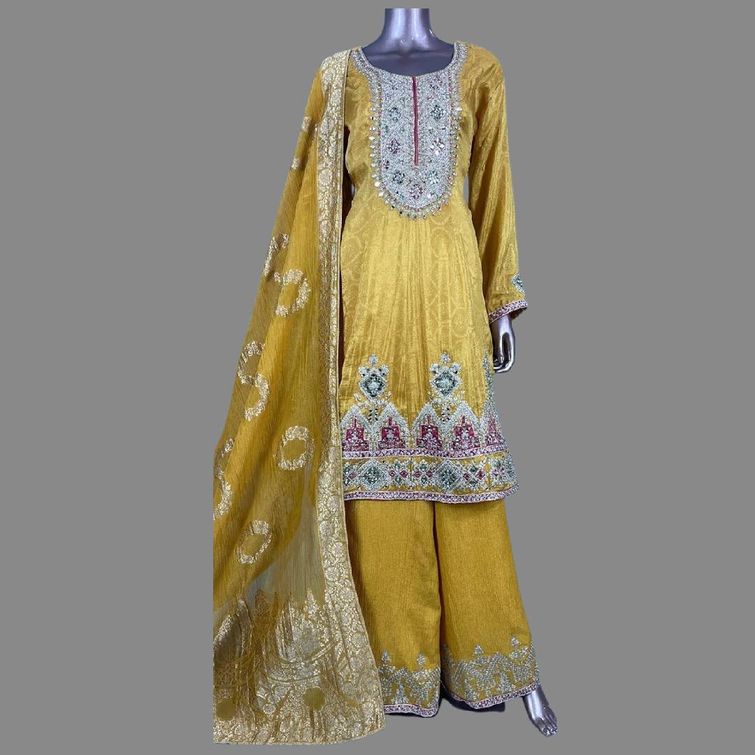 Designer Zari Embroidered Work Palazzo Suit – Yellow