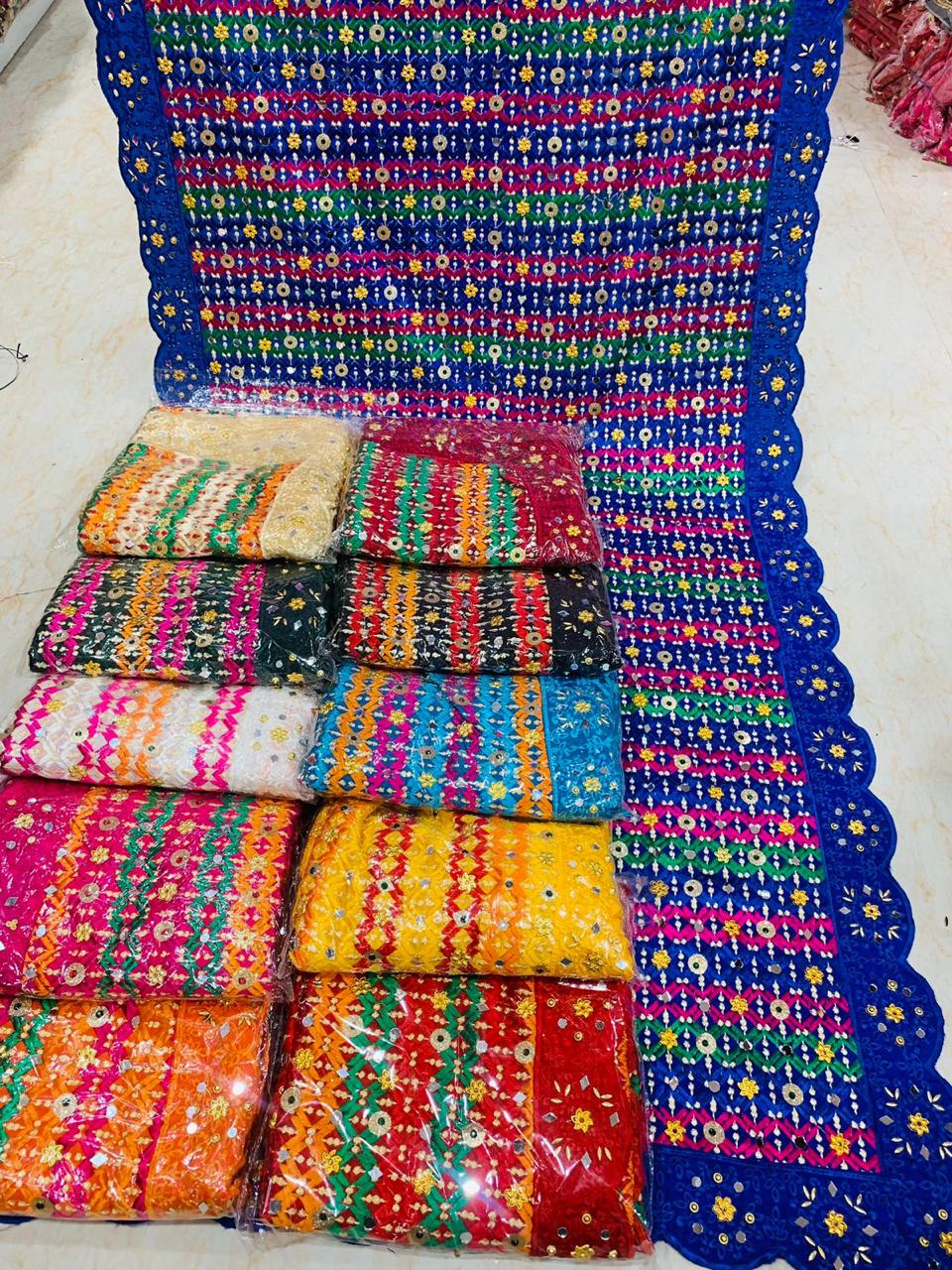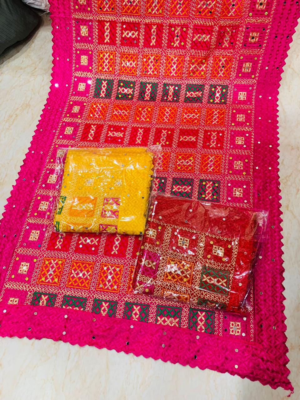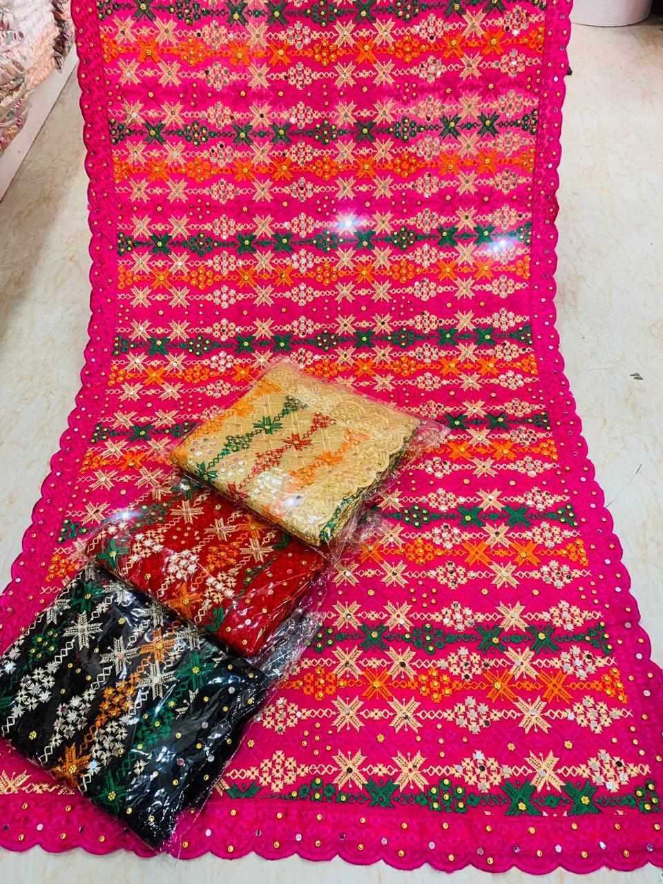 Phulkari, meaning “flower work” (phul= flower,kari=work) is a type of embroidery originally made throughout the Punjab.